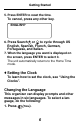 Getting Started 5. Press ENTER to reset the time. To cancel, press any other key. ENGLISH? 6. Press Search or to cycle through US English, Spanish, French, German, Portuguese, and Italian. 7. When the language you want is displayed on the screen, press ENTER to select it. The unit automatically returns to the Home Time mode. ♦ Setting the Clock To learn how to set the clock, see “Using the Clocks”. Changing the Language This organizer can display prompts and other messages in six languages.