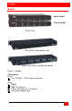 MODELS Models 6 port model 12 port model Front View Rear View (video splitter only) Rear View (video, serial/audio splitter) Figure 1. Models Connectors: Front 6 or 12 RJ45 – CAT5 cable connection. Rear DB25F DB9F (6) Serial in 3.