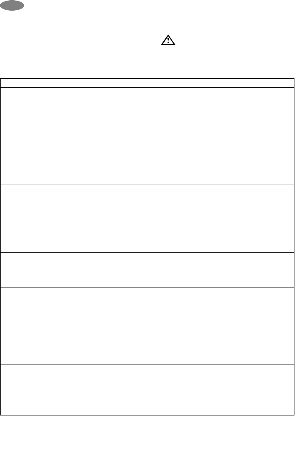 Jos tämä taulukko ei auta ongelman ratkaisussa, ota yhteyttä lähimpään valtuutettuun huoltoon.