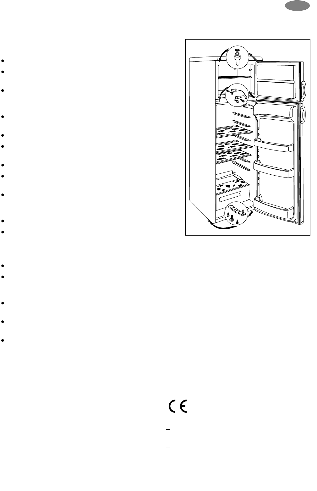 Tämä jääkaappi toimii 230 V ~ 50 Hz jännitteellä.