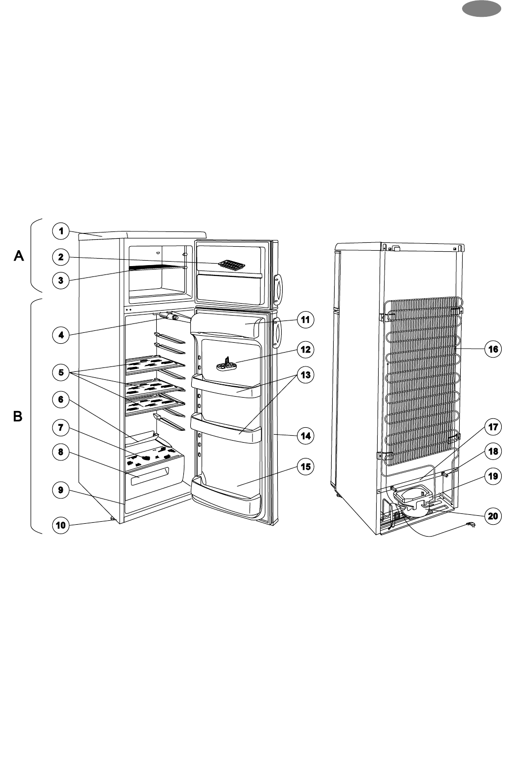 kompressori. Pakastin on sijoitettu laitteen yläosaan.
