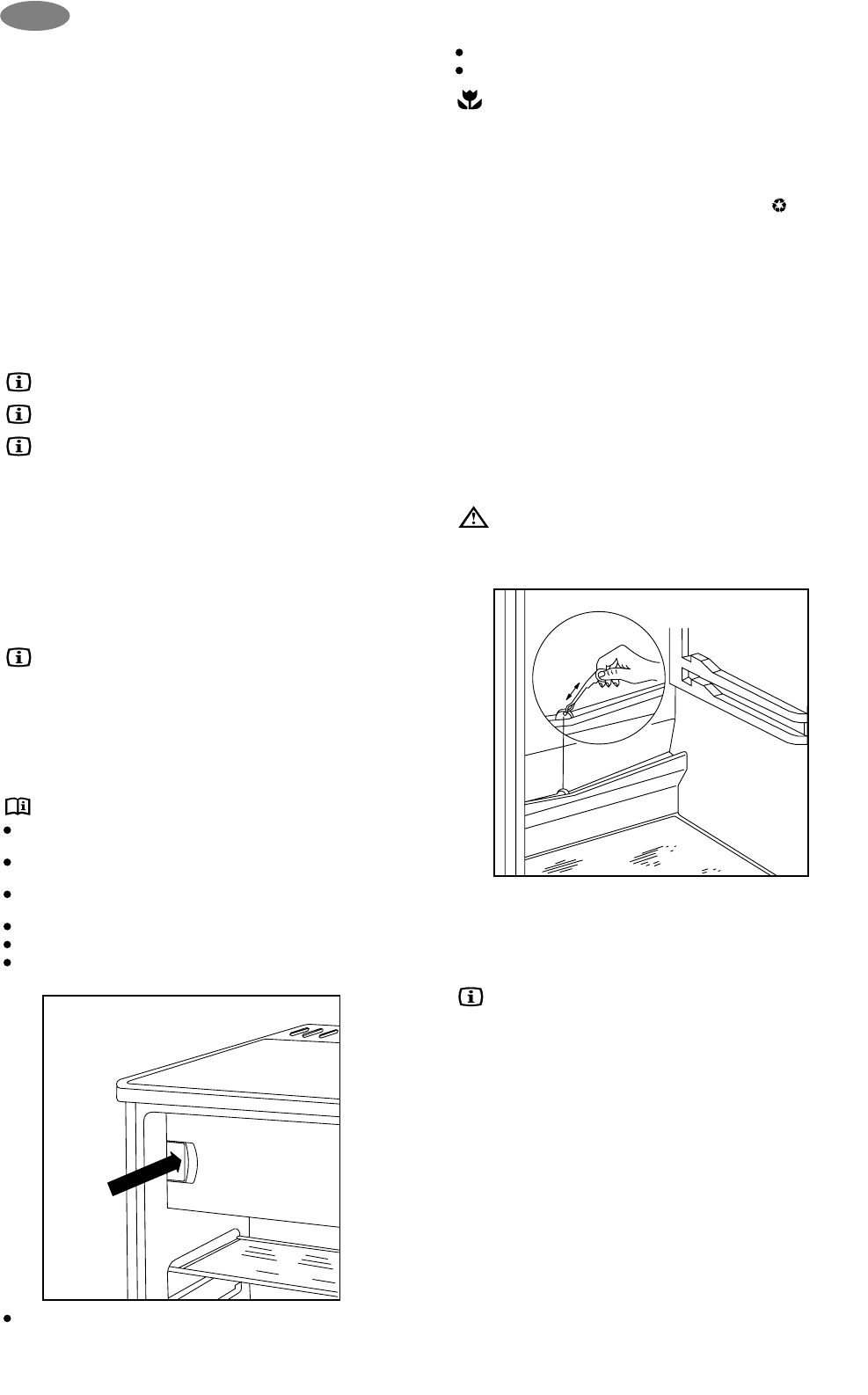 under avfrostningens gång i frysfack och dörrens förslutning.