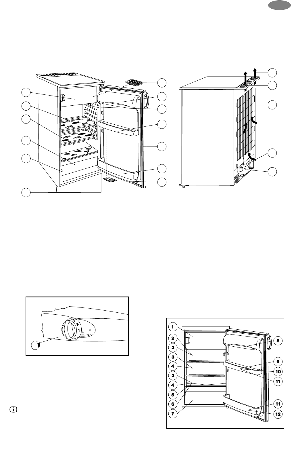 jääkaapin sisällä, oikealla puolella sijaitsevaa, termostaattia haluttuun asentoon.
