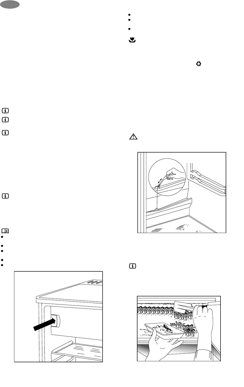 Pakastelokeron sulatus ei toimi automaattisesti. Irrota mahdollinen huurre ja jää