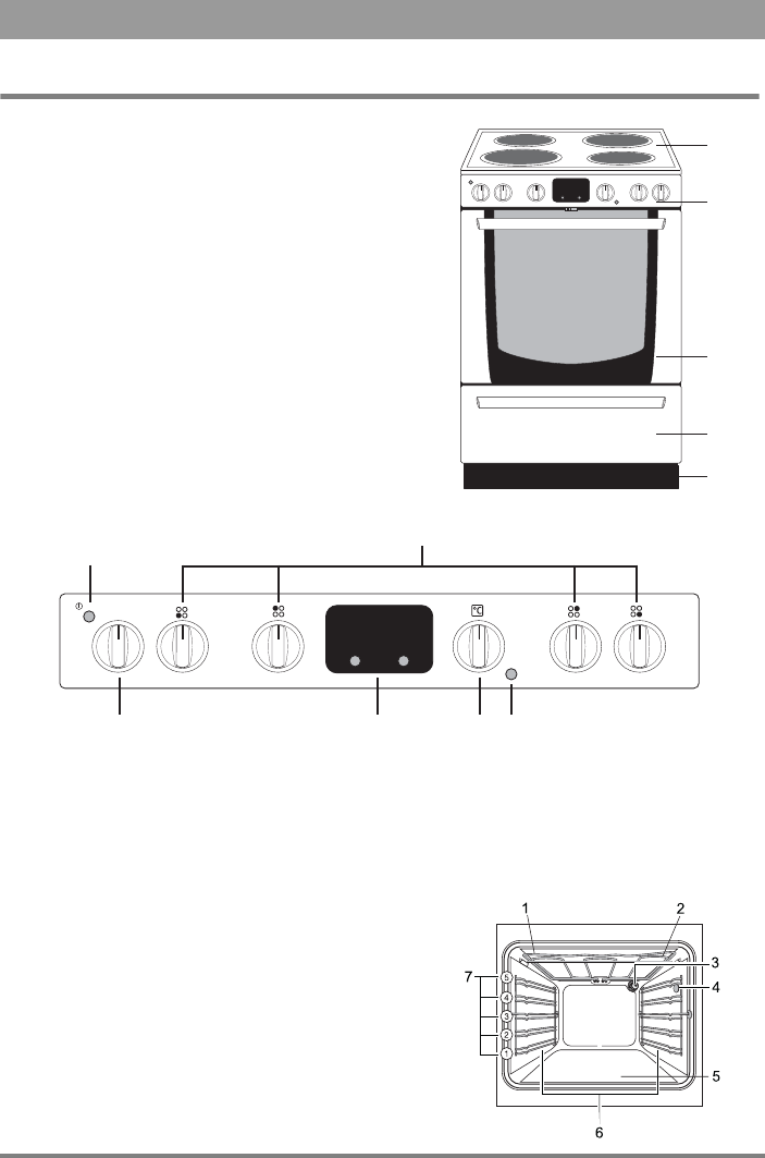 5. Uunin merkkivalo 6.Näyttöikkuna