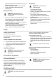 • • • • • Älä käytä sähkölaitteita elintarvikkeiden säilytystiloissa, elleivät ne ole valmistajan suosittelemaa tyyppiä. Älä käytä vesisuihketta tai höyryä laitteen puhdistamiseen. Puhdista laite kostealla pehmeällä liinalla. Käytä vain mietoja puhdistusaineita. Älä käytä hankausainetta, hankaavia pesulappuja, liuottimia tai metalliesineitä. Älä säilytä laitteessa räjähtäviä aineita, kuten syttyvien ponneaineiden aerosolipulloja.