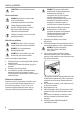 • • • Rengör produkten med en fuktig, mjuk trasa. Använd bara neutrala rengöringsmedel. Använd inte produkter med slipeffekt, skursvampar, lösningsmedel eller metallföremål. Förvara inte explosiva ämnen som t.ex. sprejburkar med lättantändligt bränsle i den här produkten. Om nätsladden är skadad måste den bytas av tillverkaren, tillverkarens auktoriserade servicerepresentant eller personer med motsvarande utbildning, för att undvika fara.