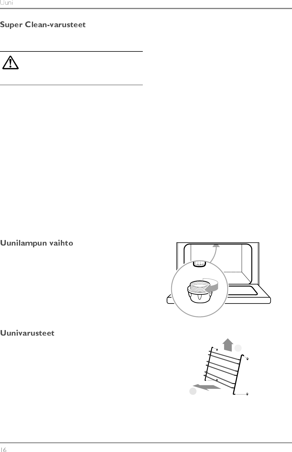 ylöspäin ja poista ne uunista (2). Pese kannattimet ja