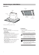 Beskrivning av köksfläkten Köksfläkten Fettfilter Utblås Motorhus Belysning Strömbrytare Glas Utdragbar skärm (reglerar fläkten och lyset) Tillbehör Funktioner Detta medföljer köksfläkten: • Skruvar för montering: 10 st. 5x30 mm skruvar. • Kallrasspjäll. • Instruktionsbok.