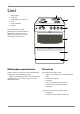 Sisällys Sisällys Innehåll Turvallisuus ................................................. 3 Liesi .............................................................. 4 Pakkauksen purkaminen .................. 4 Varusteet ............................................ 4 Turvavarusteet ........................................... 5 Kaatumiseste ..................................... 5 Keittotason suoja (lisävaruste) ......... 5 Luukun salpa ..................................... 6 Ennen lieden käyttöönottoa.........