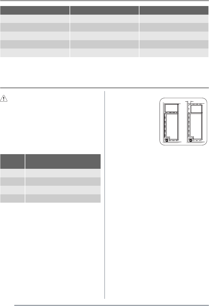 vara minst 40 mm avstånd mellan skåpets ovansida