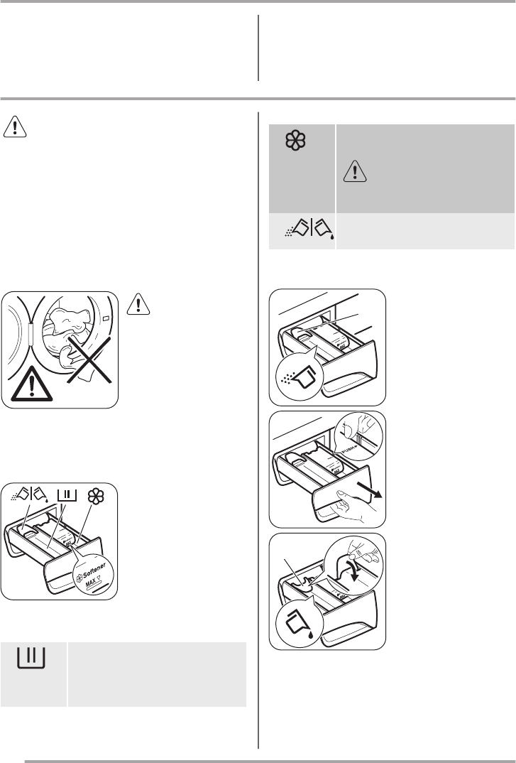 Lägg inte i för mycket tvätt i trumman. Se max.