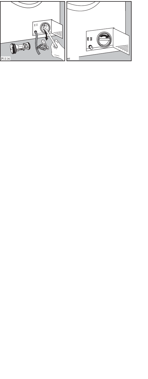 nödtömningsslangen måste du hälla 2 liter vatten i