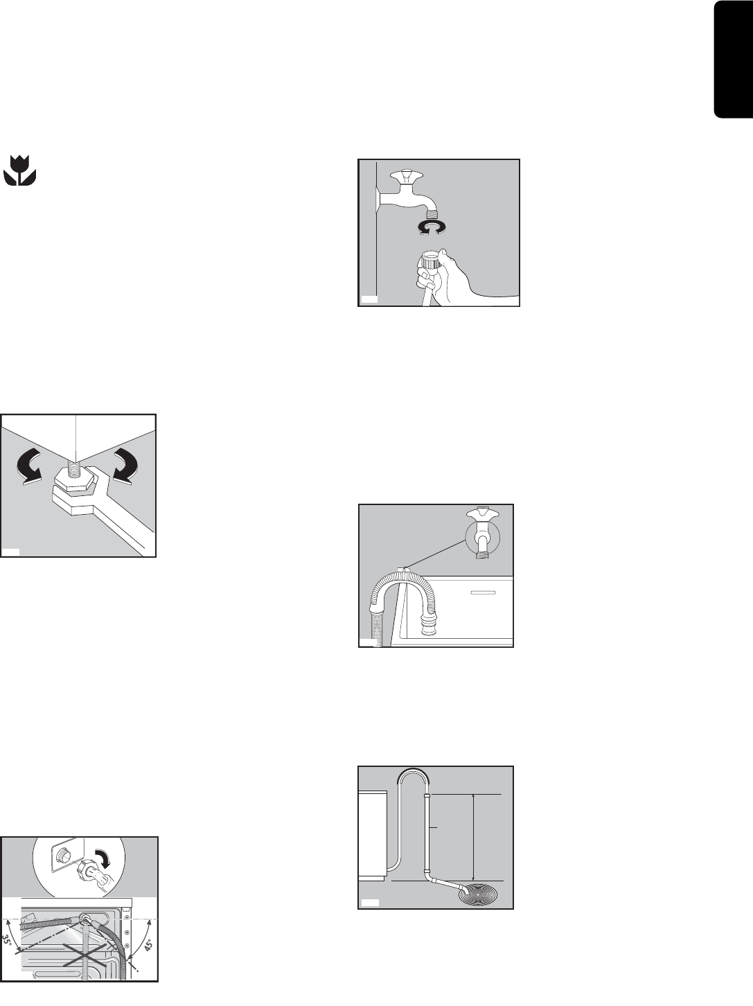 Rikta inte tilloppsslangen nedåt. Vinkla slangen åt