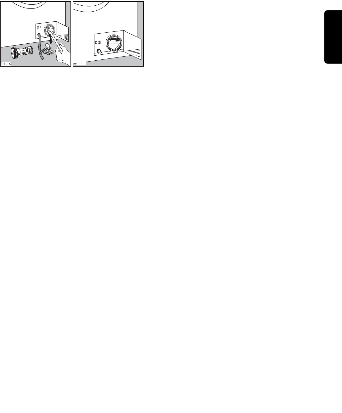 pää astiaan. Poista tulppa. Vesi valuu astiaan.