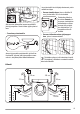 Jos poistoviemäriä ei ole käytetty aikaisemmin, poista mahdollinen tulppa. MAX 100cm • Suoraan viemäriputkeen, joka on vähintään 60 cm:n ja korkeintaan 100 cm:n korkeudella. Sido muovinen letkunpidike hanaan narunpätkällä, jotta tyhjennysletku ei irtoaisi laitteen tyhjennyksen aikana. • Pesualtaan poistoviemäriin. Poistoletkun päässä on aina oltava ilmarako, toisin sanoen viemäriputken sisähalkaisijan on oltava suurempi kuin poistoletkun ulkohalkaisija. Tyhjennysletku ei saa olla mutkalla.