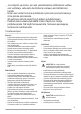• • • • Jos virtajohto vaurioituu, sen saa vaaratilanteiden välttämiseksi vaihtaa vain valmistaja, valtuutettu huoltoliike tai vastaava ammattitaitoinen henkilö. Ennen kuin aloitat hoitoa tai puhdistusta, kytke laite pois toiminnasta ja irrota pistoke pistorasiasta. Älä suihkuta vettä tai käytä höyryä laitteen puhdistamiseen. Puhdista laite kostealla pehmeällä liinalla. Käytä vain mietoja puhdistusaineita. Älä käytä hankausainetta, hankaavia pesulappuja, liuottimia tai metalliesineitä.