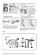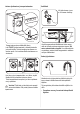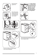 • Avlägsna den utvändiga filmen. Använd en kniv om nödvändigt. • Lossa nätkabeln, tilloppsslangen och tömningsslangen från hållarna på maskinens baksida. • Avlägsna kartonglocket. • Avlägsna frigolitemballaget. 1 2 • Sprid ut framstycket på golvet bakom produkten och lägg sedan försiktigt produkten på det med den bakre sidan nedåt. Kontrollera att inga slangar kläms. • Ta bort frigolitfundamentet från botten. • Ställ tillbaka tvättmaskinen i upprätt position.