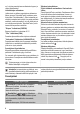Ohjelmat Täyttömäärä (kg) Energiankulutus (kWh) Vedenkulutus (litroina) Arvioitu ohjelman kesto (minuutteina) Jäännöskosteus (%)1) 1 0.35 52 56 32 Villa-/käsinpesuohjelma 30 °C Standardit puuvillaohjelmat Standardi 60 °C puuvilla 5,5 0.96 47 214 60 Standardi 60 °C puuvilla 2,5 0.81 33 165 60 Standardi 40 °C puuvilla 2,5 0.59 33 129 60 1) Linkousvaiheen päättyessä. Pois (W) Päälle jätetty (W) 0.10 0.