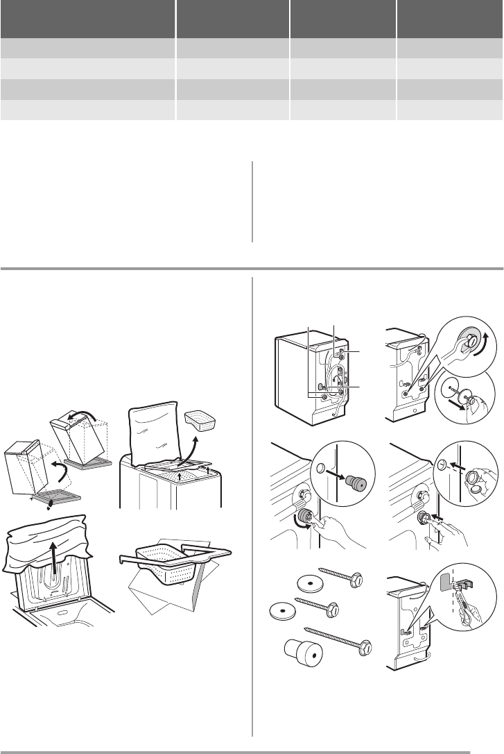 1) Förbrukningsinformationen som visas i den här tabellen är indikativ. Den kan variera beroende på mängden och typen av tvätt,