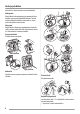 8 7 9 10 CLACK 11 CLACK Filter i tilloppsslang Gör enligt följande figurer för att rengöra filtren: Åtgärder vid risk för frost Om tvättmaskinen kan utsättas för temperaturer under 0 °C måste följande försiktighetsåtgärder vidtas: • Stäng vattenkranen och koppla loss tilloppsslangen. • Placera tilloppsslangens och tömningsslangens ändar i en behållare på golvet. • Välj och starta tömningsprogrammet och låt det slutföras. • Stäng av tvättmaskinen genom att vrida programväljaren till Stopp-läget .
