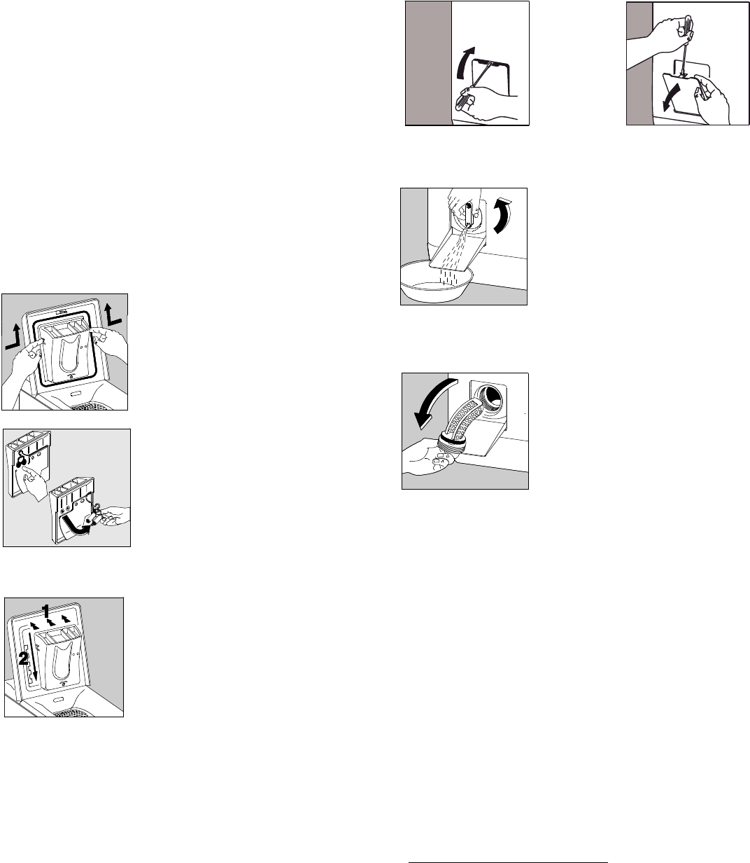 • Veden tyhjentäminen nukkasuodattimesta: