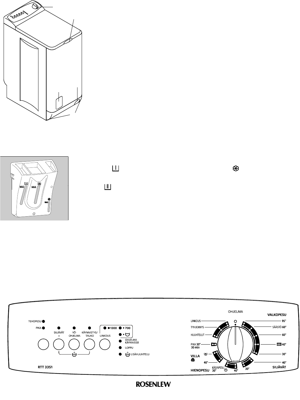 2 - pesu 4 - huuhteluaineen ylivuoto (jos ylitäyttö)