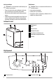 Teknisk information Mått Bredd/Höjd/Djup Elektrisk anslutning: 400 / 890 / 600 mm Totalt djup 600 mm Nätspänning Total effekt Säkring Frekvens 230 V 2300 W 10 A 50 Hz Skyddsnivån mot intrång av fasta partiklar och fukt säkerställs av skyddslocket, förutom där lågspänningsutrustningen inte har något skydd mot fukt. Vattentryck IPX4 Min 0,5 bar (0,05 MPa) Max 8 bar (0,8 MPa) Kallt vatten Vattentillförsel 1) Max.