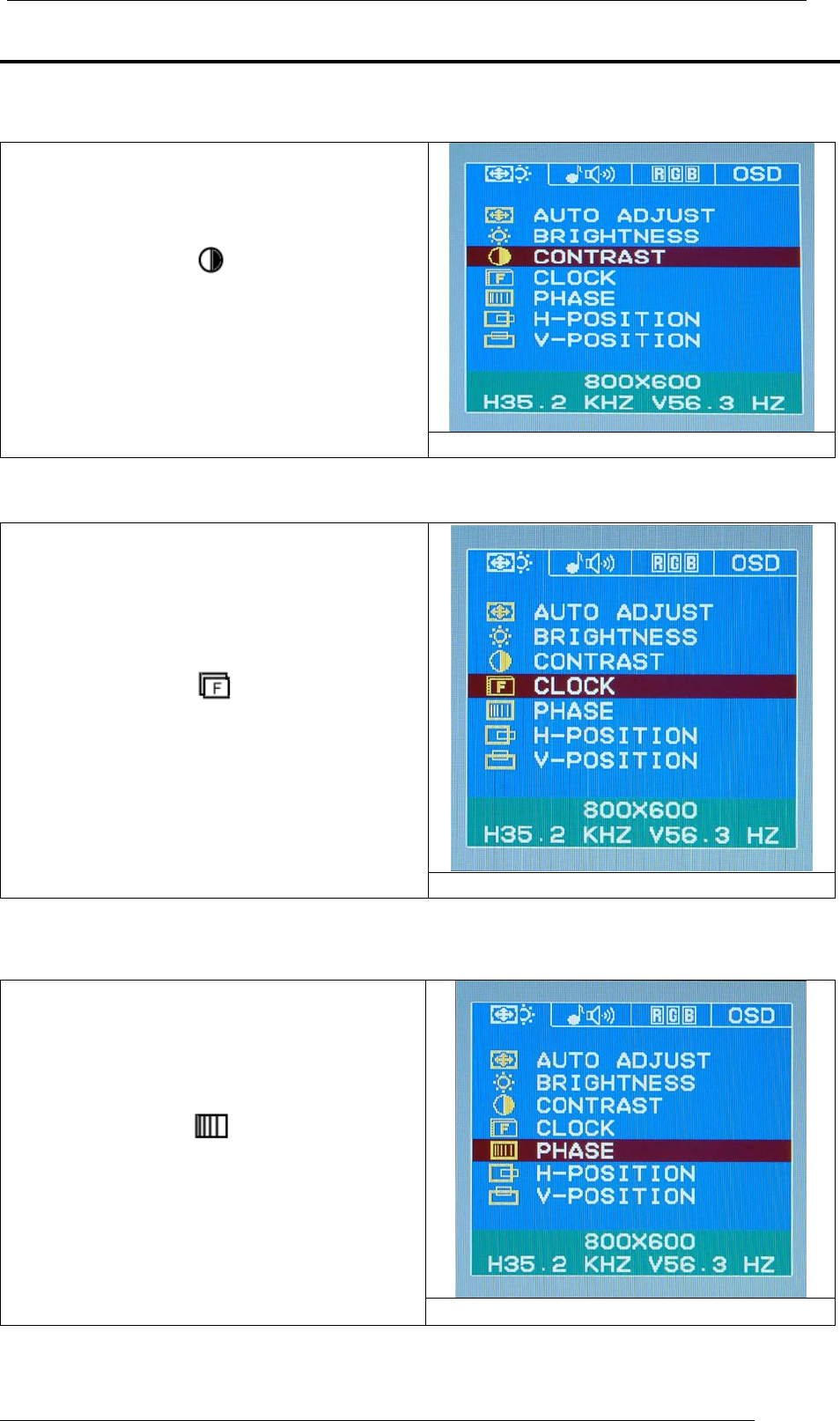 OSD (On-Screen Display) Menu Mode (PC Mode)