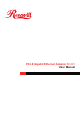 PCI-E Gigabit Ethernet Adapter RC401 User Manual Key Features • Media Access Controller(MAC): - 10/100/1000 Mbits/s triple-speed operation - Compatible with IEEE® 802.3, 802.3u, 802.3x, 802.3ac, 802.1q, and VLAN - IEEE 802.3x frame-based flow control - PXE 2.0 support - Wake on LAN • PCI Express Revision 1.0a Interface: - Full compliance with Revision 1.0a - Single-lane, 2.