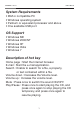KEYBOARD RK7310 USER’S Manual System Requirements • IBM or compatible PC • Windows operating system • Pentium or equivalent processor and above • One available USB port OS Support • Windows ME • Windows 2000/NT • Windows XP • Windows Vista • Windows 7 Description of hot key Home page : Start the Internet browser. E-mail : Start the e-mail application. Search : Enable to search for a file, a property, or text contained within a file. Volume down : Decrease the Volume level.