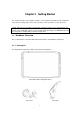 Contents Chapter 1 Features and Specifications ............................................7 1.1. 1.2. RoyalTek NS-4102T PND features ..................................................7 NS-4102T Specifications ....................................................................7 Chapter 2 Getting Started.........................................................................9 2.1. Hardware Overview..............................................................................9 2.1.1 2.1.2 2.1.3 2.2. 2.