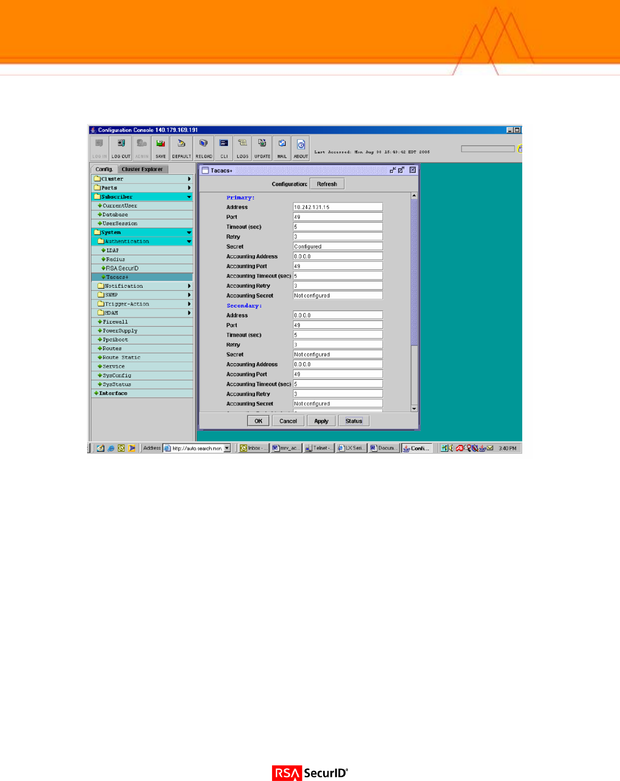 Specifying the RSA Authentication Manager Server Settings on the LX