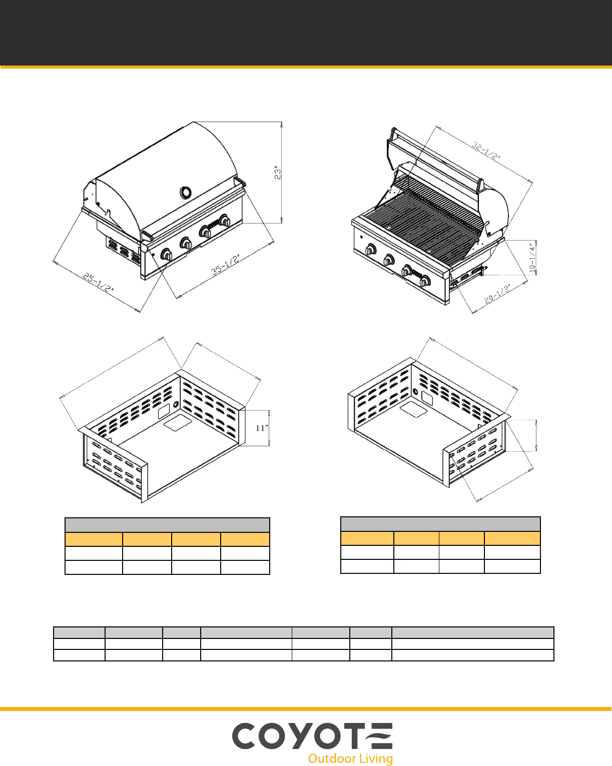 When using a Coyote insulated jacket, you will want to build your island to the jackets Cutout and Overall Dimensions