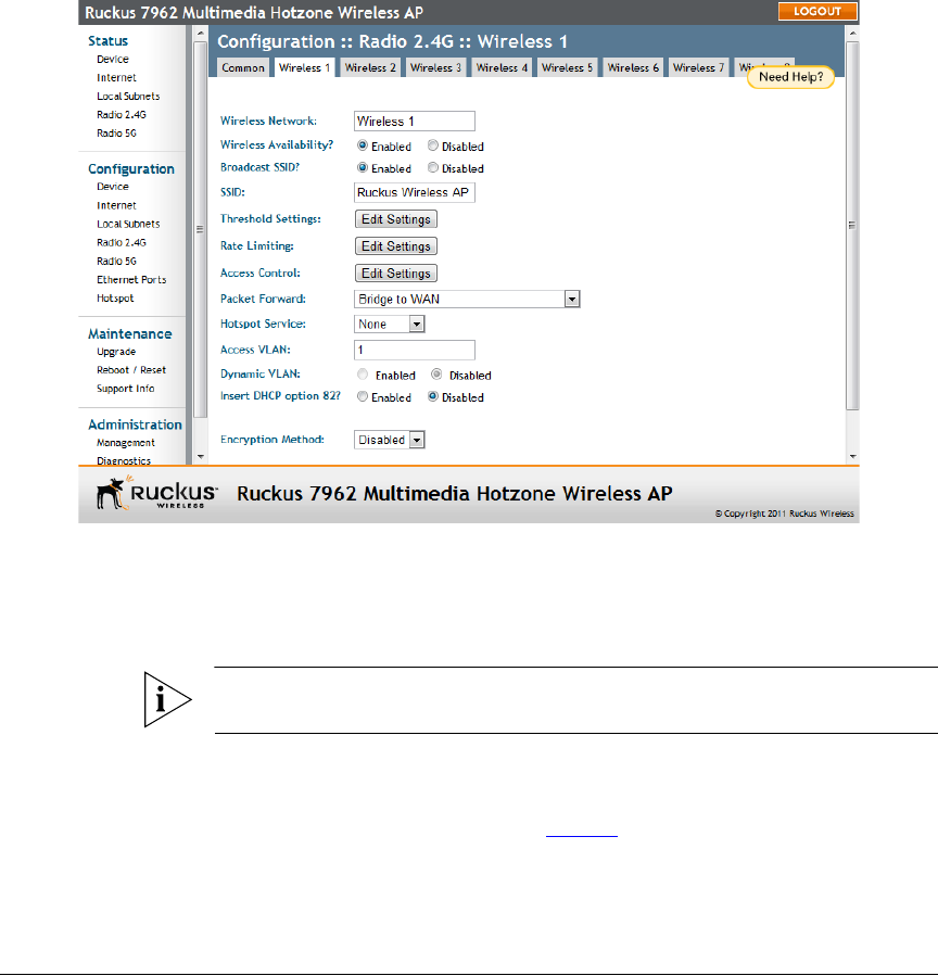 2. Click one of the eight Wireless (#) tabs. The Configuration > Wireless > Wireless
