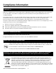 Compliance Information FCC PART 15: NOTE: This equipment has been tested and found to comply with the limits for a Class B digital device, pursuant to Part 15 of the FCC Rules. These limits are designed to provide reasonable protection against harmful interference in a residential installation. This equipment generates, uses and can radiate radio frequency energy and, if not installed and used in accordance with the instructions, may cause harmful interference to radio communications.