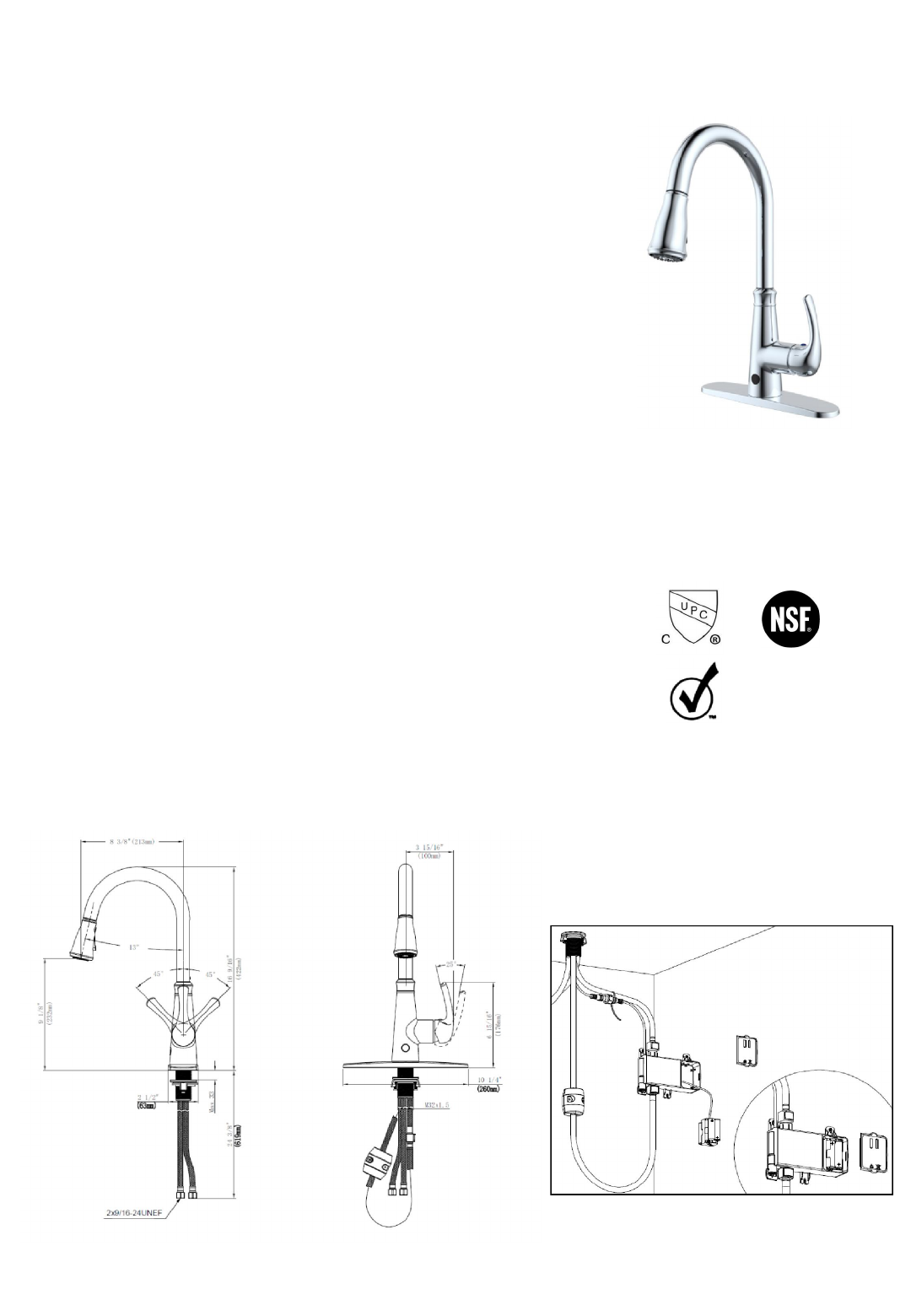 •Swivel pull-down spout with “pause”, push-button diverter and 65”