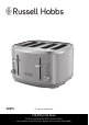 TOASTING BREAD 1. 2. 3. 4. 5. 6. 7. 8. • Sit the toaster upright on a firm, level, heat-resistant surface. Put the plug into the power socket. Turn the browning control to the required setting (1 = light, 6 = dark). Put bread into the toasting slots (maximum thickness 26mm). Press the lever down fully. It won’t lock down unless the toaster is connected to the electricity supply. The elements will heat up. When it’s done, the toast will pop up. To stop toasting, press 5.