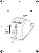 5 Press the lever down fully. , It won’t lock down unless the toaster is connected to the electricity supply. 6 The elements will heat up. 7 When it’s done, the toast will pop up. 5 EJECT 8 To stop toasting, press 5. f FROZEN BREAD 9 Leave the browning level at your favoured setting, insert the frozen bread, lower the lever, then press f. 10 The f light will glow, and the toasting time will be altered automatically to give the same degree of browning you get with unfrozen bread.