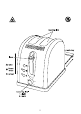 5 Press the lever down fully. , It won’t lock down unless the toaster is connected to the electricity supply. 6 The elements will heat up. 7 When it’s done, the toast will pop up. 5 EJECT 8 To stop toasting, press 5. f FROZEN BREAD 9 Leave the browning level at your favoured setting, insert the frozen bread, lower the lever, then press f. 10 The f light will glow, and the toasting time will be altered automatically to give the same degree of browning you get with unfrozen bread.