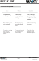 ® RVF1210ST Trouble-Shooting Guide Issue Cause The water will not completely turn off. There is a dirty, worn out, or damaged washer in the cartridge. Check to see if the ceramic disc is dirty or damaged by removing the handle and the cartridge. Water is leaking from under the handle. The adjusting ring or cap has become loose. Tighten the adjusting ring or cap. The aerator is leaking or has an inconsistent water flow pattern. The aerator does not fit correctly or has become dirty.