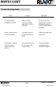 ® RVF5110ST Trouble-Shooting Guide Issue Cause The water will not completely turn off. There is a dirty, worn out, or damaged washer in the cartridge. Check to see if the ceramic disc is dirty or damaged by removing the handle and the cartridge. Water is leaking from under the handle. The adjusting ring or cap has become loose. Tighten the adjusting ring or cap. The aerator is leaking or has an inconsistant water flow pattern. The aerator does not fit correctly or has become dirty.