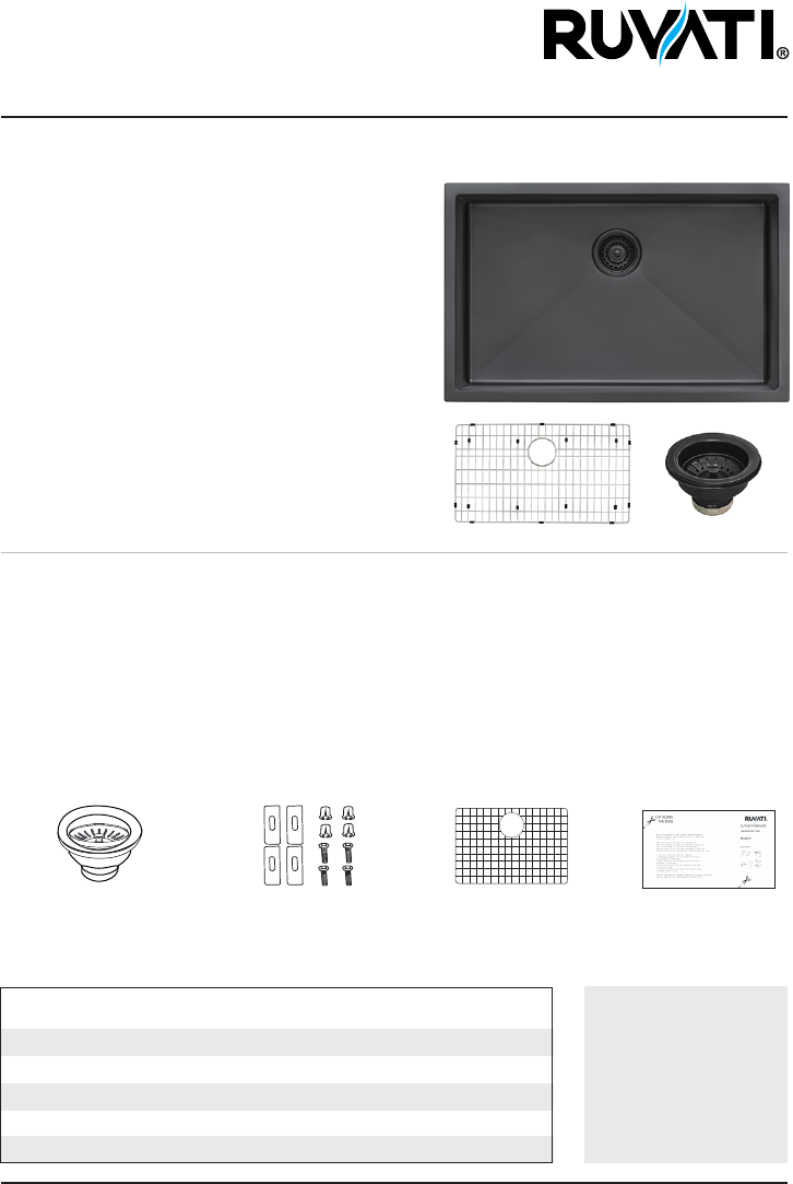 UNDERMOUNT KITCHEN SINK SPECIFICATION SHEET