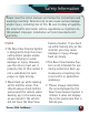 Safety Information Please read the entire manual and follow the instructions and warnings carefully. Failure to do so can cause serious damage and/or injury, including loss of life. Be sure to obey all applicable local traffic and motor vehicle regulations as it pertains to this product. Improper installation will void manufacturer’s warranty. USAGE • The Rear View Camera System is designed to help the driver safely detect people and/or objects helping to avoid damage or injury.