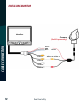 MONITOR OPERATIONS CAMERA SELECTION DOWN ARROW MENU/ SELECTION BUTTON UP ARROW ROTATE IMAGE POWER ON/OFF (Exit in Menu Mode) NAVIGATING MENU • "Brightness" "Contrast "Saturation" "Sharpness": adjust image properties • Picture Adjust: Stretch image horizontally (right/left and left/right) • Turn: Toggle between mirror/normal image on each individual channel • Day/Night: Toggle between back-lit buttons and auto dimming • Name: Change name of each individual channel • Trigger source: Toggle channel des