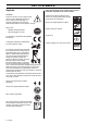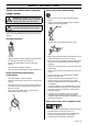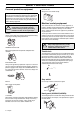 SAFETY INSTRUCTIONS Muffler Cutter guard (325HDA55) • • Never use a machine that has a faulty muffler. • Check that the blade guard is not damaged or distorted. • Replace the blade guard if it is bent or damaged. Regularly check that the muffler is securely attached to the machine. Gear housing • • The gear housing gets hot when the machine has been in use. To avoid burning yourself do not touch the gear housing.