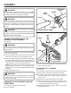ASSEMBLY After assembly is complete, adjust the position of the handle for best balance and comfort. SHOULDER HARNESS Tighten the long bolt, then the short bolt. INSTALLING THE SHOULDER HARNESS AND STRAP HANGER See Figure 4. Pull apart the ends of the shoulder harness hanger to expand slightly. LATCH SHOULDER HARNESS HANGER LOCK WASHER Slide the hanger over the power head shaft immediately behind the “J” handle. Squeeze hanger ends together to retighten.