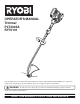 OPERATOR’S MANUAL Trimmer PLT3043A RY70101 Your new trimmer has been engineered and manufactured to Ryobi’s high standard for dependability, ease of operation and operator safety. Properly cared for, it will give you years of rugged, trouble-free performance. WARNING: To reduce the risk of injury, the user must read and understand the operator’s manual. Thank you for buying a Ryobi trimmer.