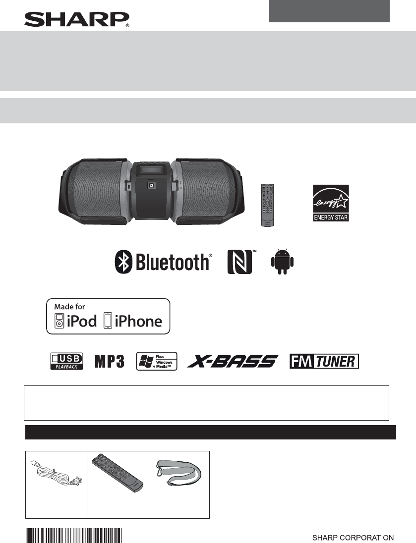 ENGLISH MODEL GX-BT9 PORTABLE BLUETOOTH BOOMBOX OPERATION MANUAL Thank you for purchasing this SHARP product. To obtain the best performance from this product, please read this manual carefully. It will guide you in operating your SHARP product. PORTABLE MUSIC BOOMBOX GX-BT9 REMOTE SENSOR iPhone, iPod, iPod nano and iPod touch are trademarks of Apple Inc., registered in the U.S. and other countries. Lightning is a trademark of Apple Inc.