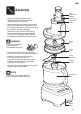 EN Assembly • Position the Processing Bowl onto the Motor Base and turn the bowl clockwise until the handle locks to the front. • Before placing the lid onto the Processing Bowl, place your Geared Spindle and position it over the coupling in the centre of the Processing Bowl. • If you intend to dice larger quantities (more than 5 cups) please insert the Dicing Distributor after placing your geared spindle into the bowl. The Dicing Distributor will help to distribute diced food evenly across the bowl.